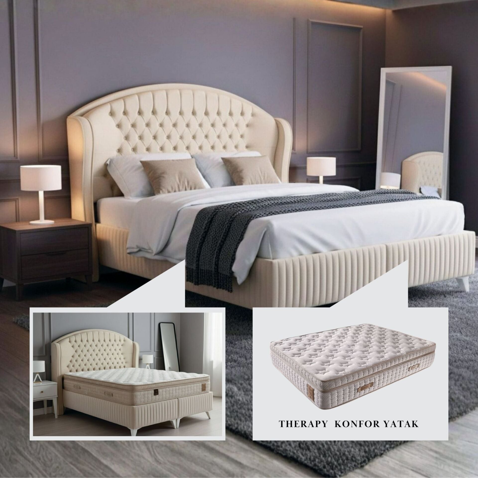 Geniş ve ihtişamlı başlık formu, yatak odanızın odak noktası haline gelirken; güçlü gövde yapısı ve kaliteli işçiliği sayesinde uzun yıllar güvenle kullanabileceğiniz bir set sunar.