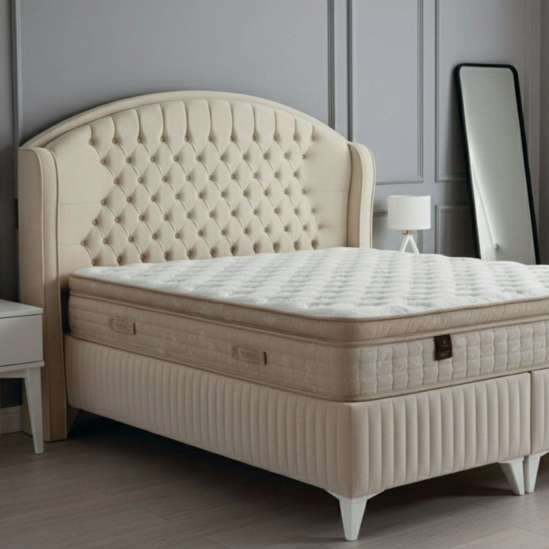 Prime Yatak Baza Başlık Set ve Yünce Konfor Yatak kombinasyonu; estetik görünümü, doğal malzemeleri ve üstün konforu ile yatak odanızı adeta bir dinlenme alanına dönüştürür. Hem şıklığı hem de sağlıklı uyku deneyimini bir arada sunan bu set, uzun yıllar vazgeçilmeziniz olacak.