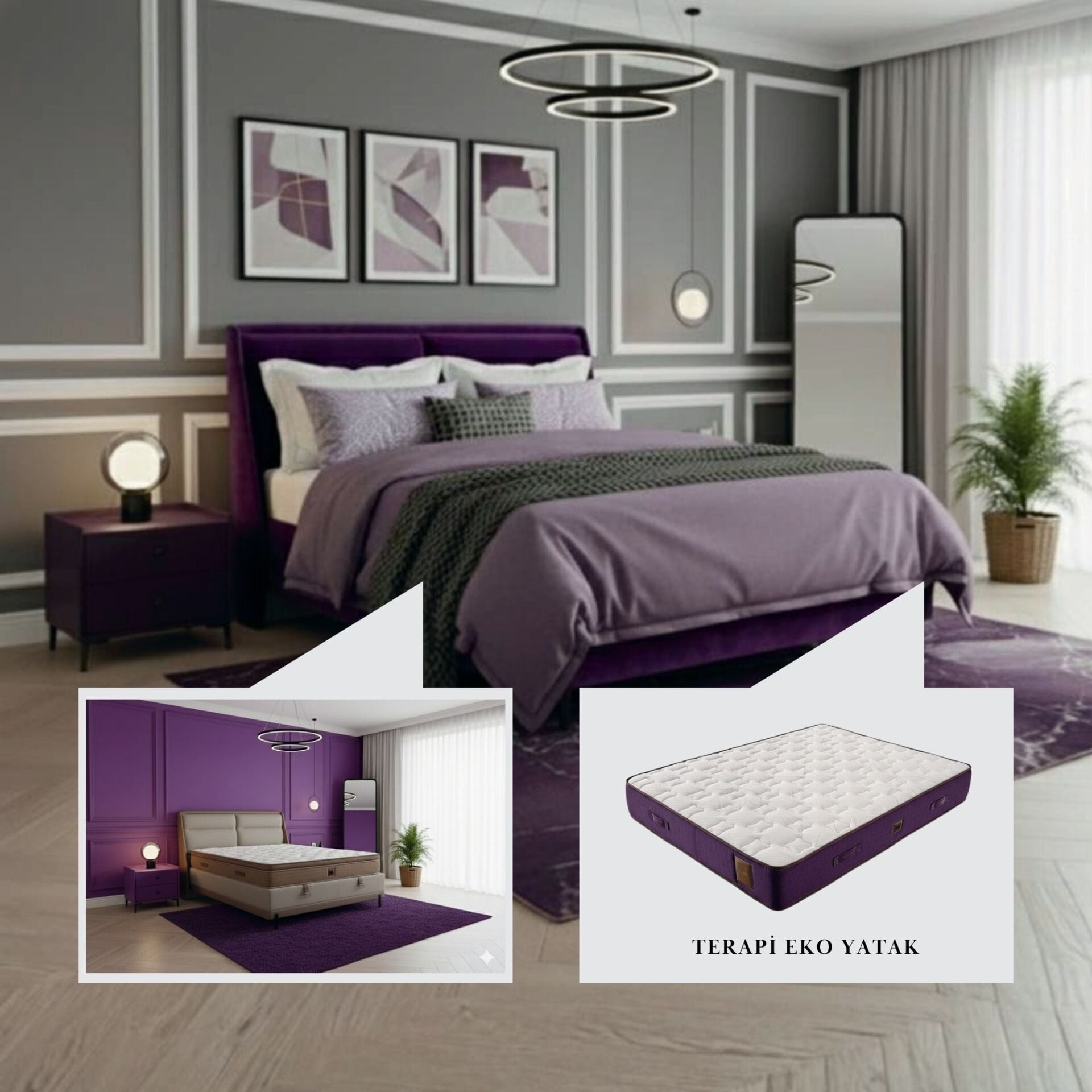 Wingo Yatak Baza Başlık Set ve Therapy Eko Yatak kombinasyonu, sade tasarımı ve konfor odaklı yapısıyla yatak odanızda huzurlu ve ferah bir yaşam alanı oluşturur. Her gece dinlendirici ve kaliteli bir uyku deneyimi sunar.